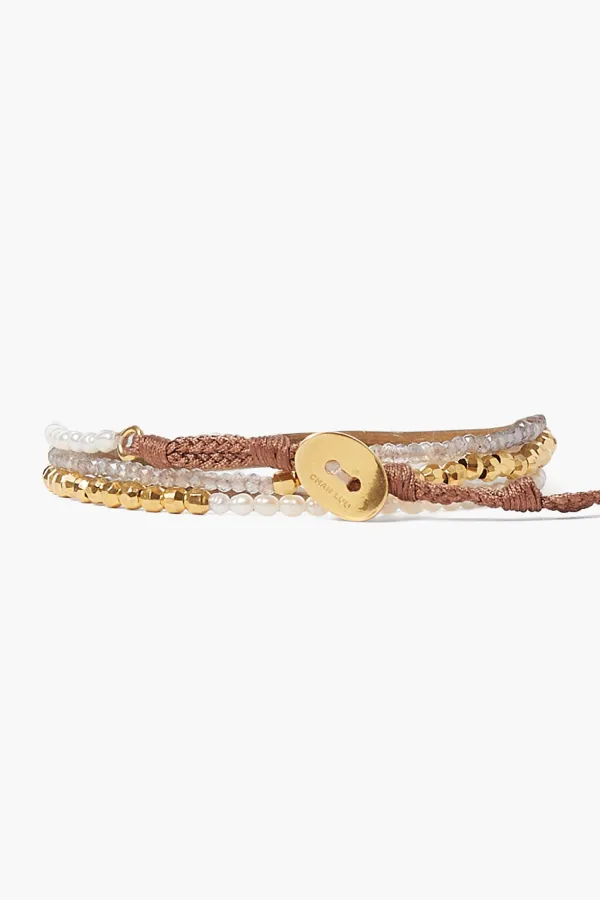Sea And Shore Meet In A Triple Layer Wrap Featuring A Calming Golden Wave At Center, Surrounded By Mystic Labradorite And Freshwater Rice Pearls.