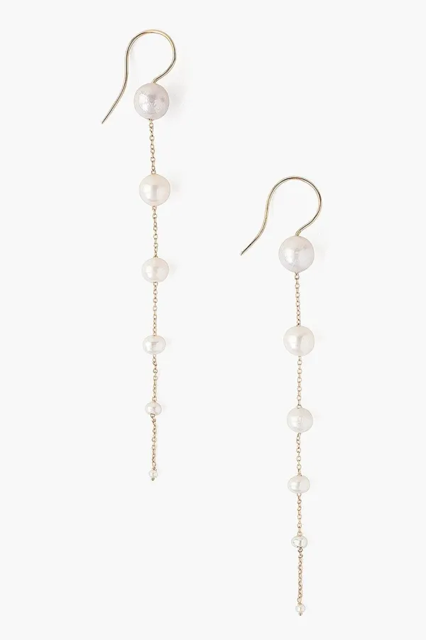 Graduated Tiered 14K Gold Earrings Featuring White Freshwater Pearl.