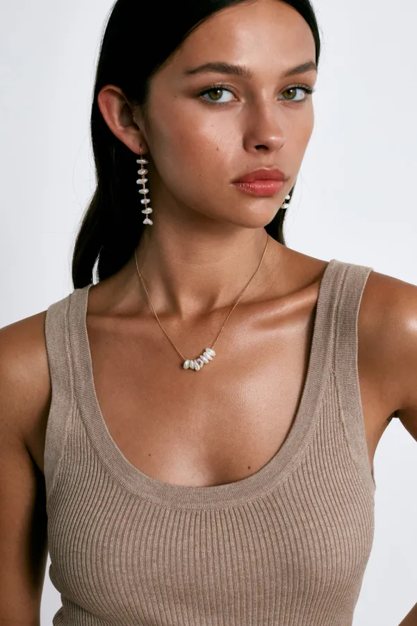 An Elevated Take On The Classic Pearl. Natural White Keshi Pearls Float On An 18K Gold Plated Sterling Silver Chain Threader Earring. Perfect Styled Alone.