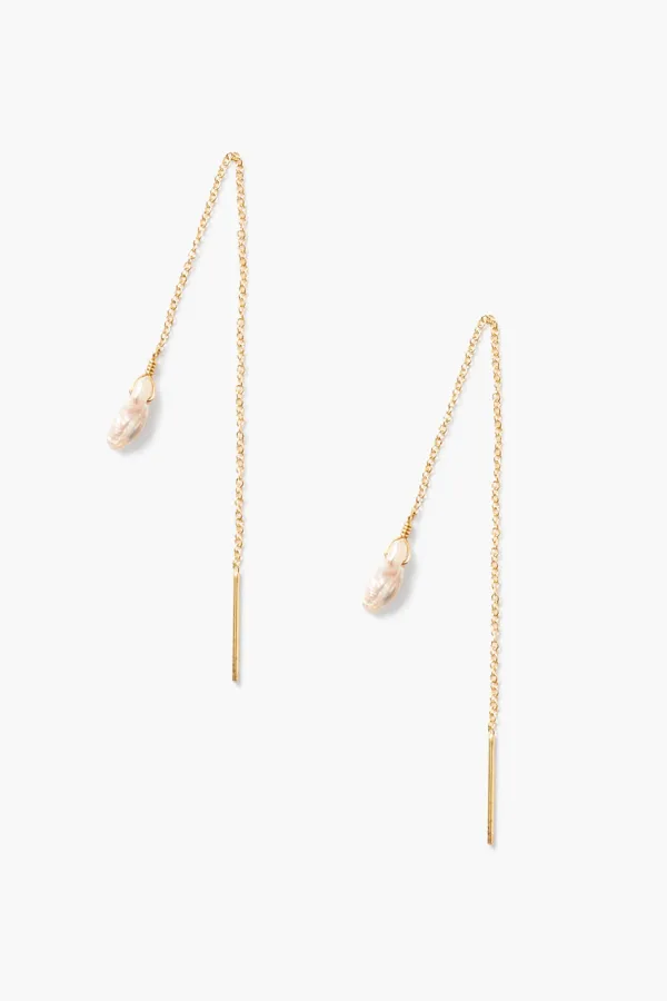 Natural Pink Keshi Pearl Chips Sway From Delicate Gold Chains In These Lightweight Thread-Thru Earrings.