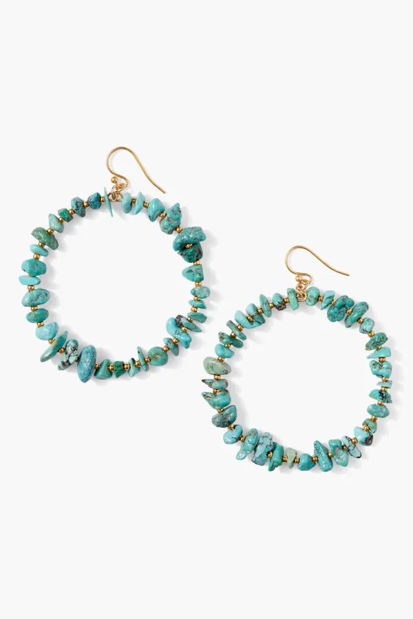 Inspired By The Grand Beauty Of Tropical Reefs. Turquoise Chips Encircle A Gold Plated Base Metal Hoop With An 18K Gold Plated Sterling Silver French Hook.
