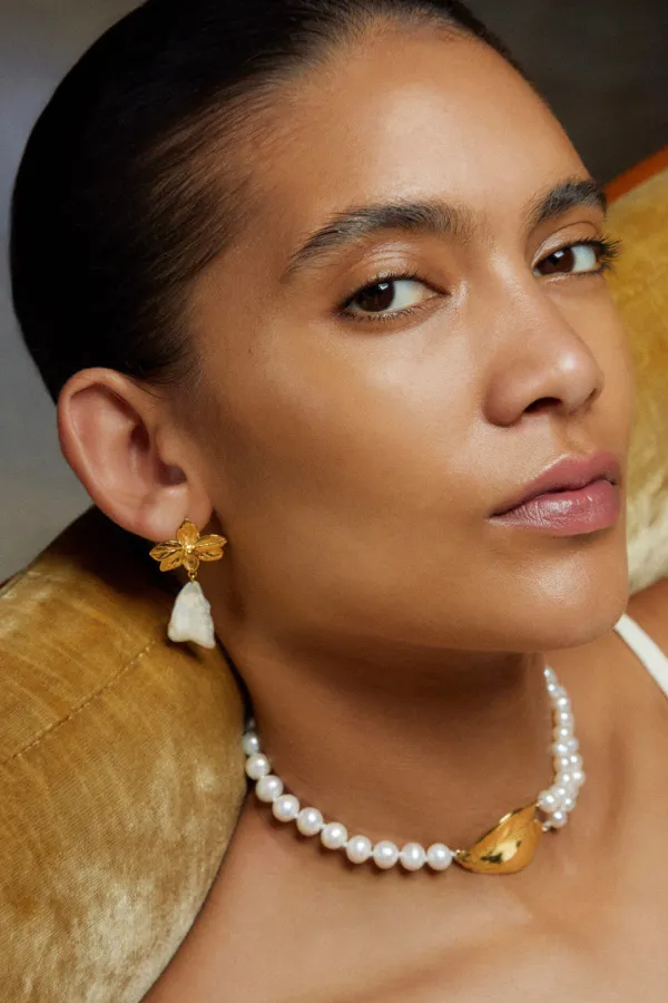 - 18K Gold Plated Sterling Silver, Biwa Pearl, Citrine.