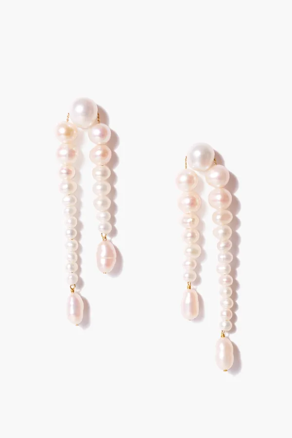 White Freshwater Pearls Cascade From A Center Pearl Stud In These Cheerful Earrings. Fastens With A Silver Post.