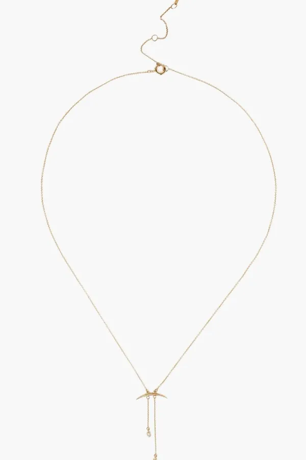 Drops Of White Diamond Suspend From A 14K Gold Horn Pendant In This Dazzling New Take On Our Iconic Horn Necklace. Fastens With An Adjustable Ring Clasp.