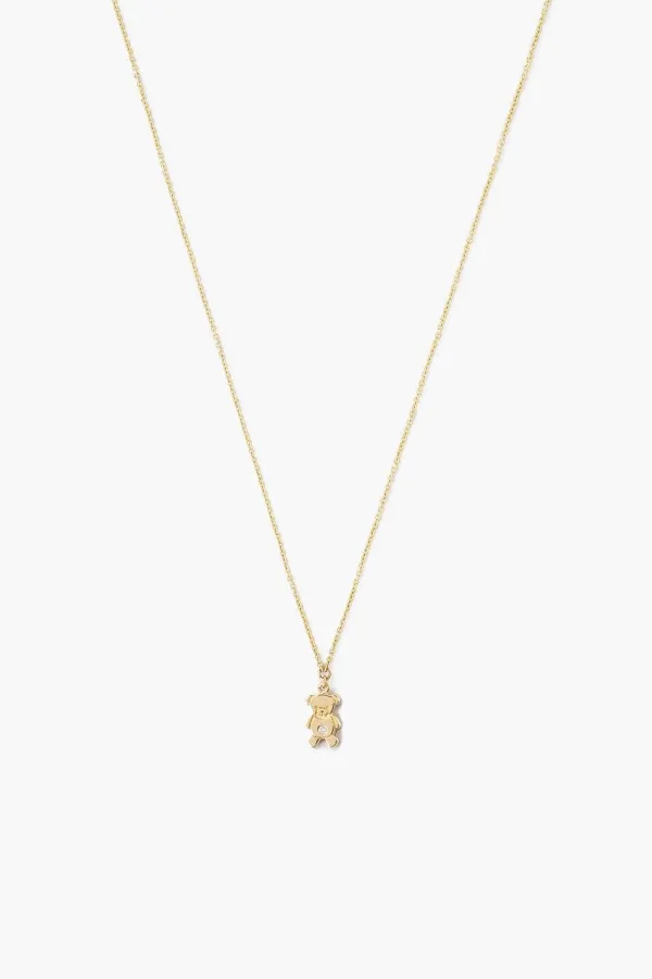 Playful Yet Elegant, This 14K Gold Necklace Features A Dainty Teddy Bear Charm With White Diamond Inlay. The Perfect Layering Piece. Fastens With An Adjustable Ring Clasp Closure.