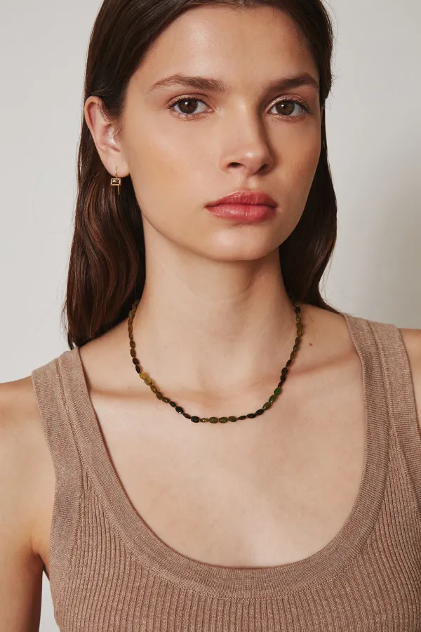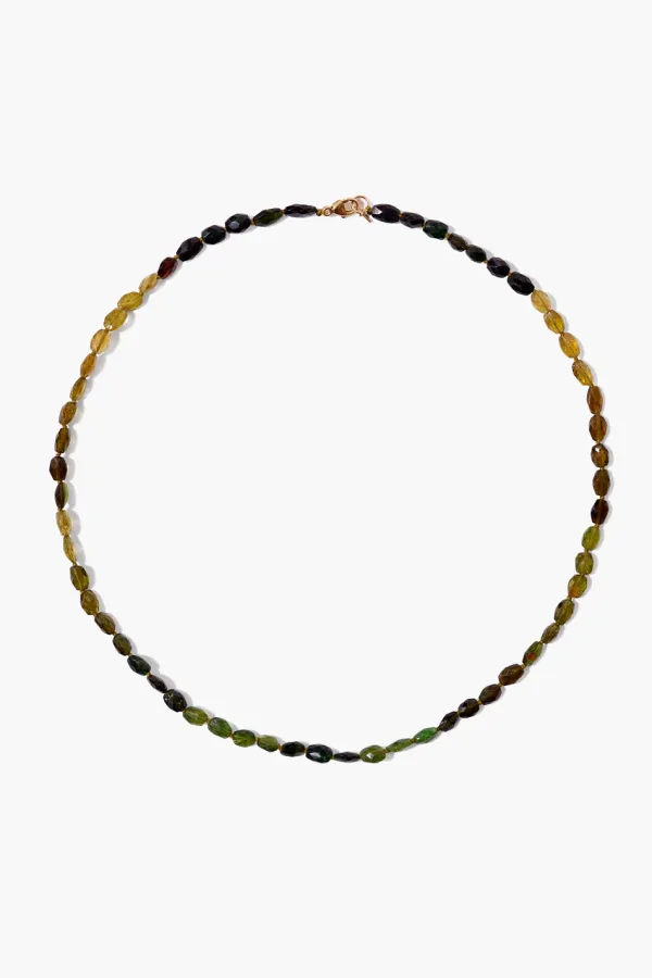 Green Tourmaline In An Olive Ombré Pattern Decorates This Classic Beaded Necklace With 14K Gold Lobster Clasp Closure.