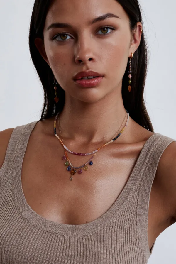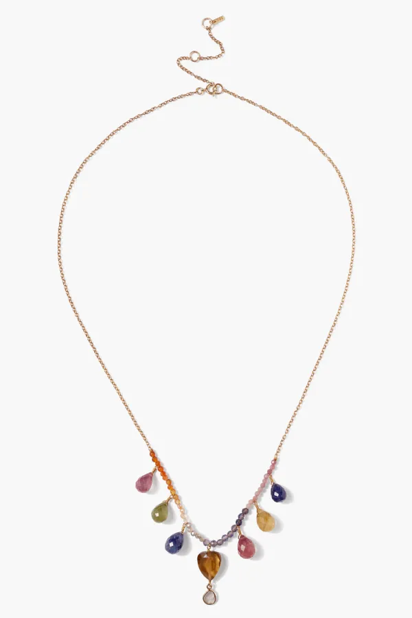 A Mix Of Vibrant Multicolored Sapphires And A Sliced Diamond Drop Give This Elegant 14K Solid Gold Necklace A Playful Touch. Pair With Delicate Drop Earrings To Complete The Look.