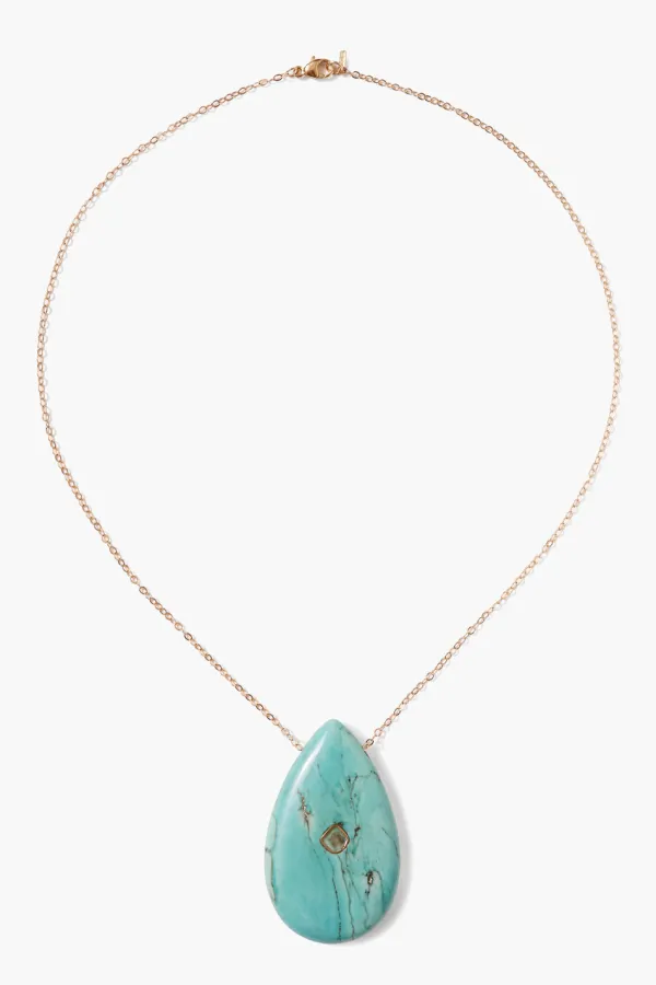 Inspired By The Sunset Colors Of The Southwest, This 14K Solid Gold Necklace Features A Teardrop Turquoise Pendant With A Shimmering Gold Wrapped Diamond Slice At The Center. A Statement Design Perfect On Its Own Or Layered With Dainty 14K Styles.