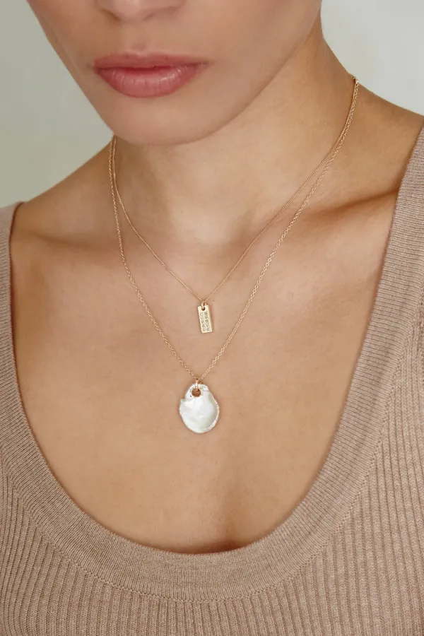 - 14K Kilauea Necklace: 14K Yellow Gold, Keshi Pearl Coin. 16″ – 18″ Adjustable.