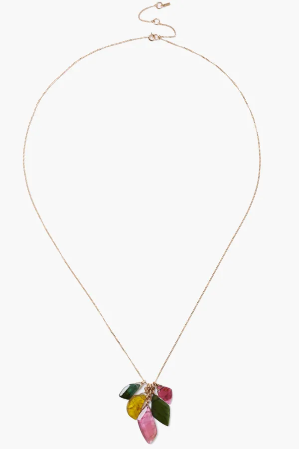 A Colorful Mix Of Tourmaline Gems Assembled Along A 14K Gold Cable Chain Forms A Whimsical Kaleidoscope Effect.