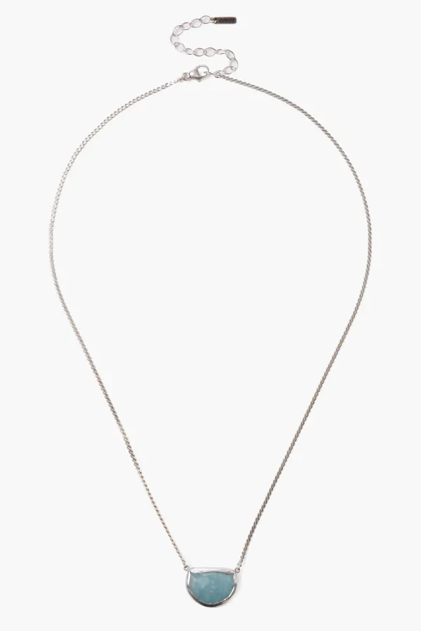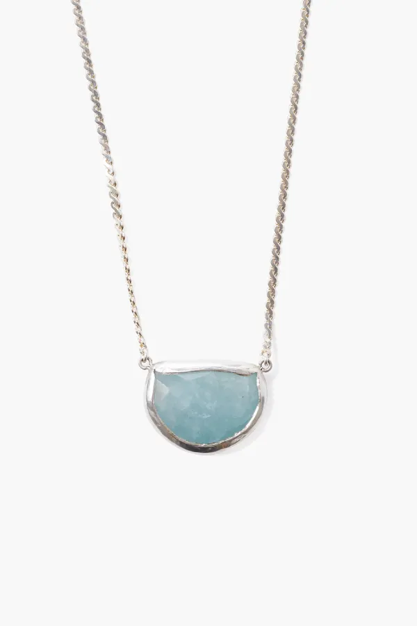 The Solitaire Half-Moon Aquamarine Takes Center Stage In A Silver Bezel Fixed Along A Serpentine Chain.