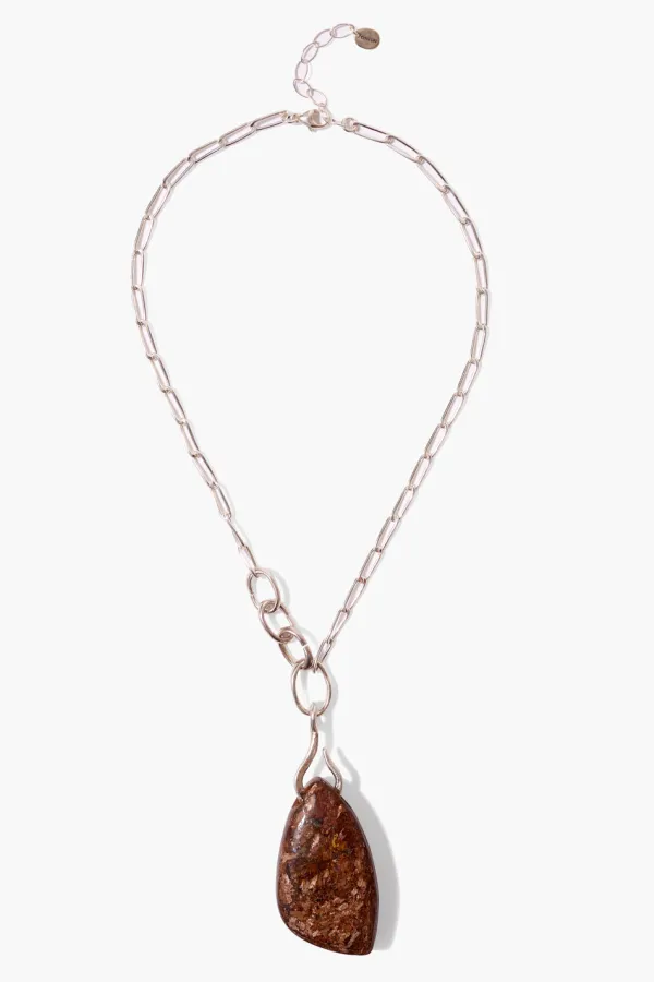 This Modern Talisman Necklace Enchants With Its Bold Bronzite Stone Pendant On A Silver Hook. Mixed Chain Links Add A Bold Textural Effect.