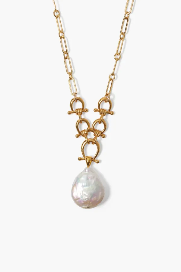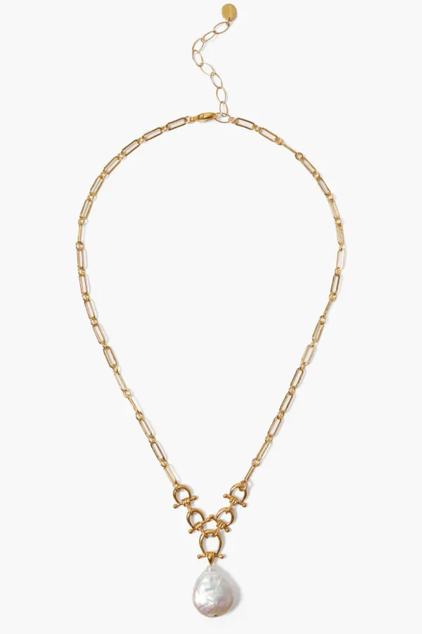 Stirrup Inspired Hardware And A White Pearl Pendant Makes This Necklace The Perfect Centerpiece To Any Look. Style Solo Or Layered With More Gemstone Necklaces.