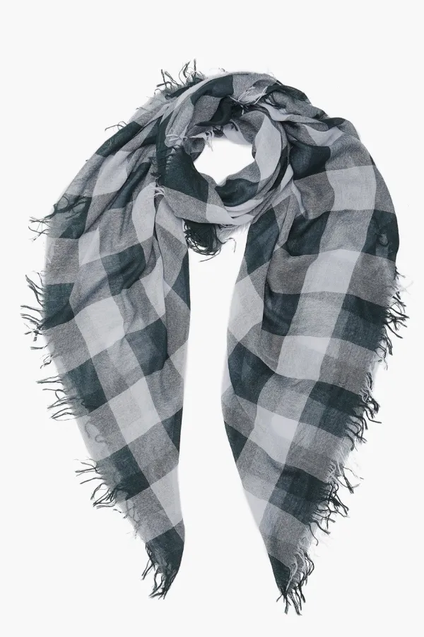 Crafted From Our Signature Cashmere And Silk Blend, This Essential Scarf Features A Slate Gray And Deep Green Gingham Print With Decorative Fringe Trim Along The Edges. It’S Lightweight Yet Incredibly Warm, Perfect For Year-Round Wear.