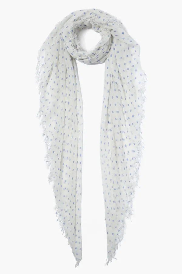 Made From Our Signature Blend Of Cashmere And Silk This Scarf Sports A Dot Print In A Soft Blue Hue. Super Soft And Lightweight With A Fringed Trim, It’S Perfect For Year-Round Wear.