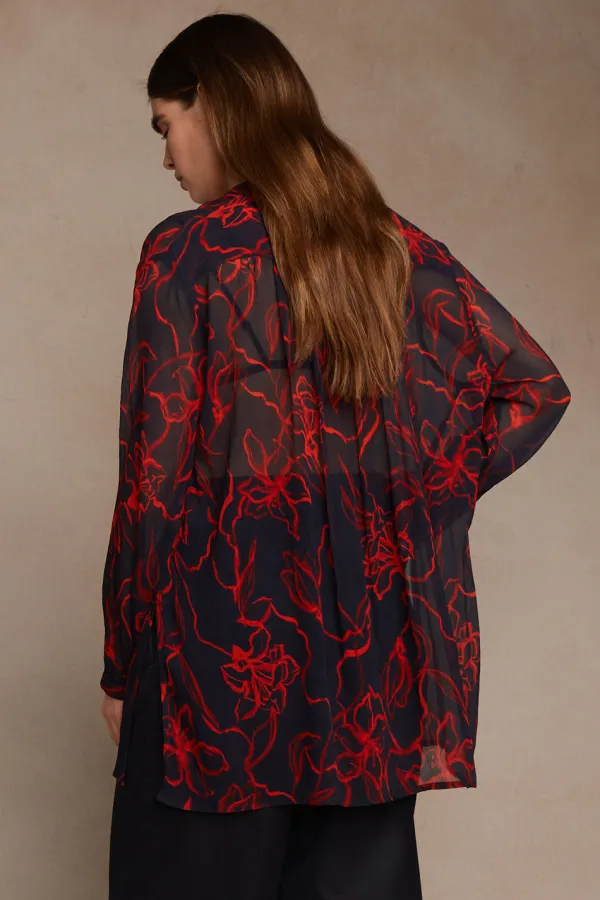 Silk Chiffon Button Down Blouse With A Brush Stroke Floral Print. A Light, Breathable Silhouette That’S Versatile For All Seasons.
